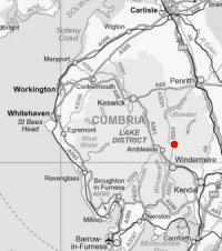Troutbeck Church - above Limefitt Park - Long Green Head - south ridge - Troutbeck Tongue - slate bridge - Troutbeck Park Farm - Hagg Bridge - Ing Bridge - Ing Lane - A592 - Troutbeck Church [6.50 miles 1,050ft ascent]