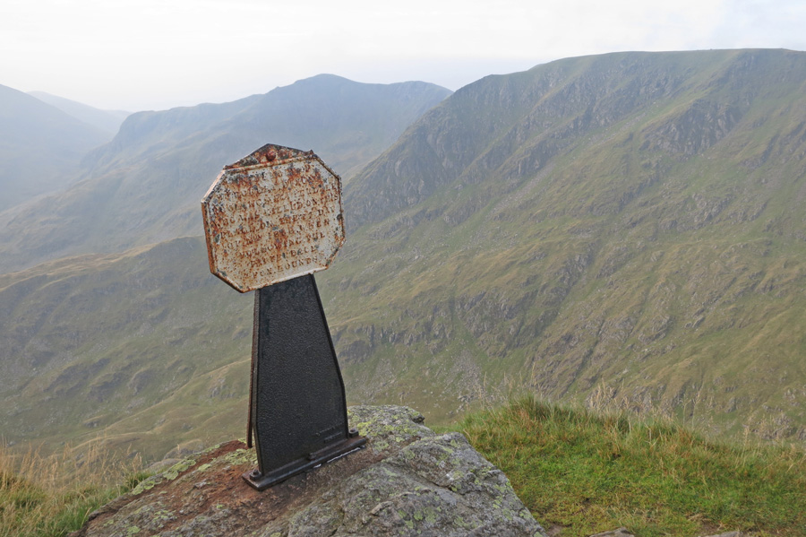 The Dixon memorial just after High Spying How at the start of Striding Edge
