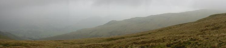 South westerly panorama from Nab Scar: Ambleside, Windermere, Rydal Water, Loughrigg and Grasmere