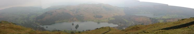 Alcock Tarn and Grasmere from Stone Arthur's summit