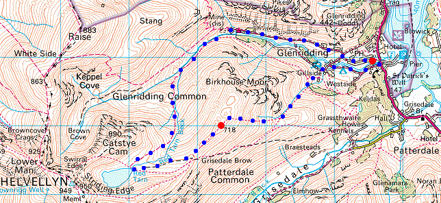 Route: Glenridding village - Mires Beck path - Birkhouse Moor - Red Tarn - Red Tarn Beck path - Greenside Road - Glenridding village