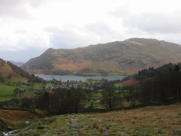 Glenridding village, Ullswater and Place Fell from the path up Birkhouse Moor