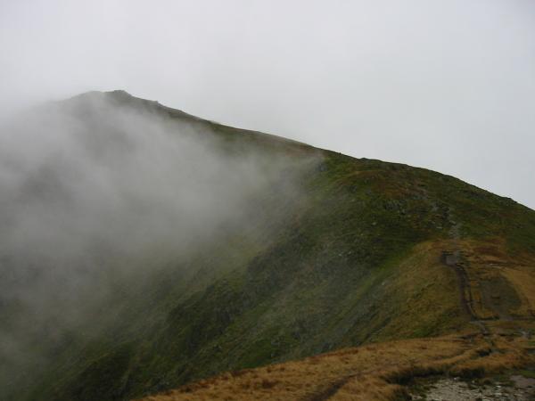 In cloud most of time, drizzle and rain showers from Harter Fell onwards, mild, light winds
