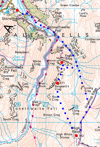 Route: Stonethwaite - Eagle Crag - Sergeant's Crag - High Raise - Low White Stones - Greenup Edge - Greenup Gill - Stonethwaite