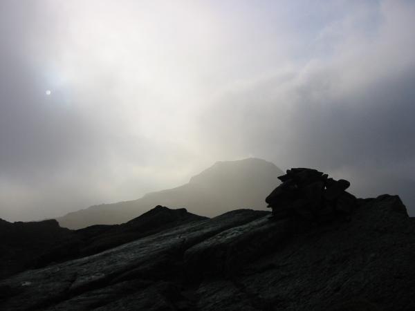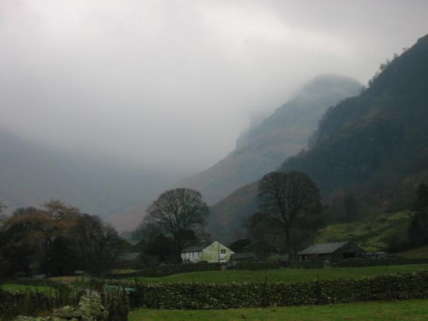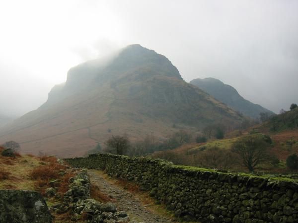 Eagle Crag in cloud from Stonethwaite
