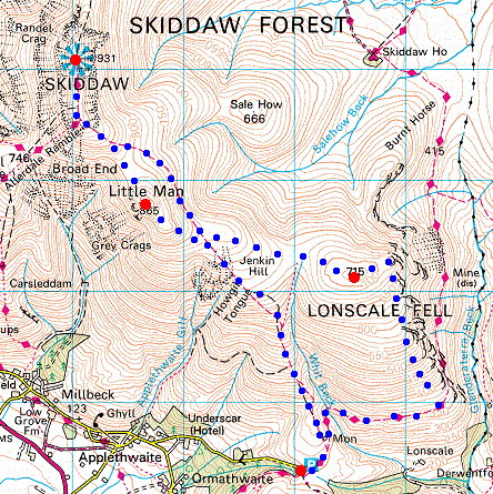 Route: Latrigg car park (end of Gale Road) - Lonscale Fell - Skiddaw - Skiddaw Little Man - Skiddaw Lesser Man - Jenkin Hill - Latrigg car park