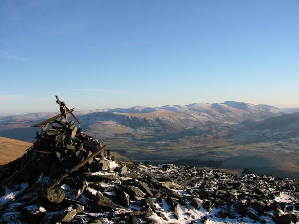 Lonscale Fell summit with Skiddaw Little Man and Skiddaw behind