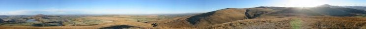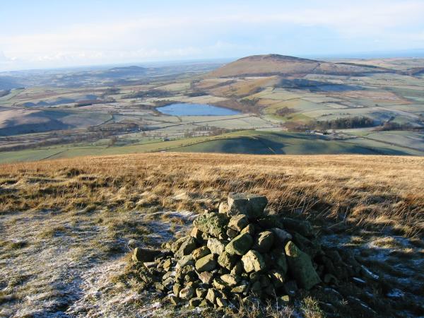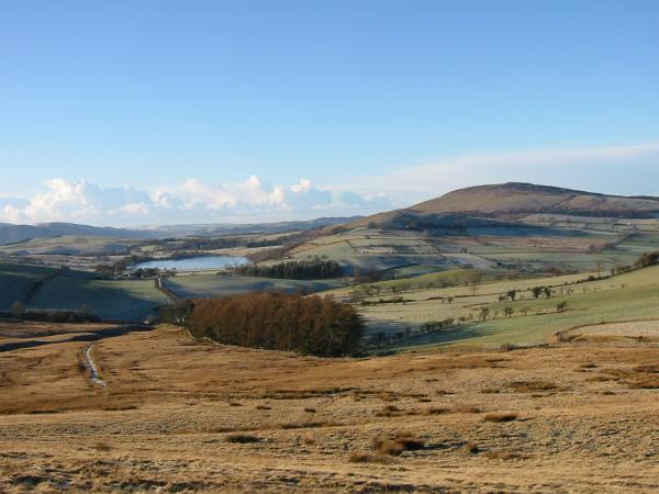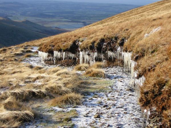 Dry, blue sky with a dusting of snow on the ground but cold in the wind on the tops.