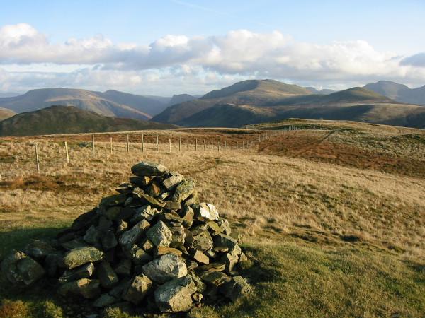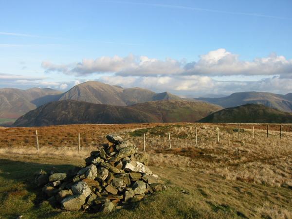 Mellbreak and Hen Comb with the north western fells behind from Gavel Fell summit