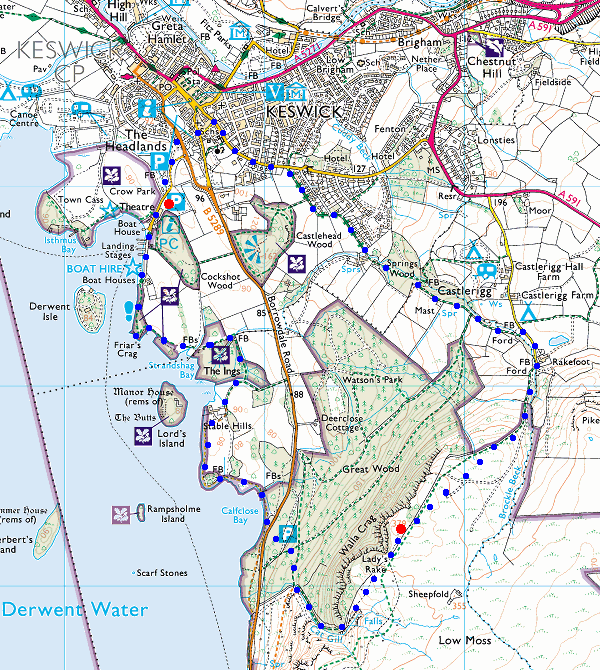 Route: The Theatre by the Lake, Keswick - Friar's Crag - Derwent Water - Cat Gill - Walla Crag - Rakefoot - Keswick - The Theatre by the Lake