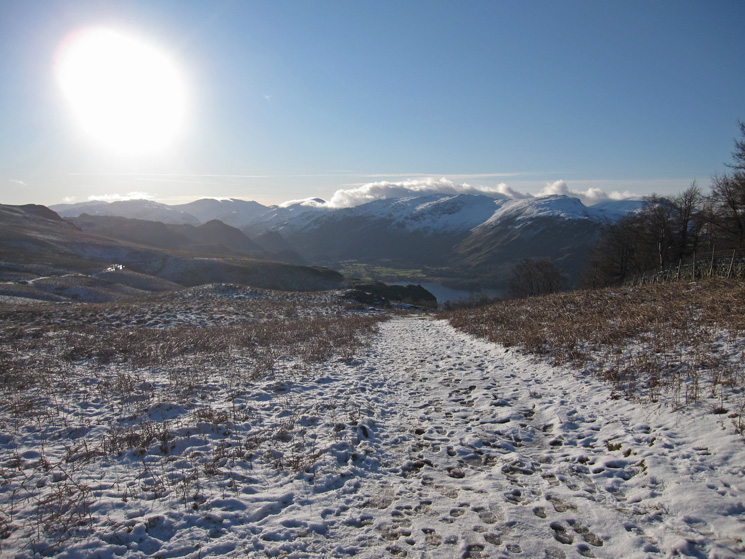 Looking south up Borrowdale into the sun
