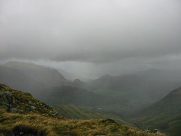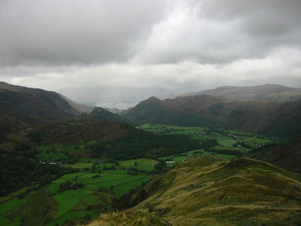 Borrowdale in the rain from Thornythwaite Fell