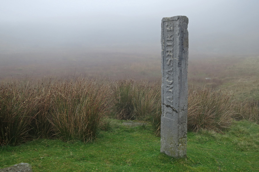 Three Shire Stone at the top of Wrynose Pass