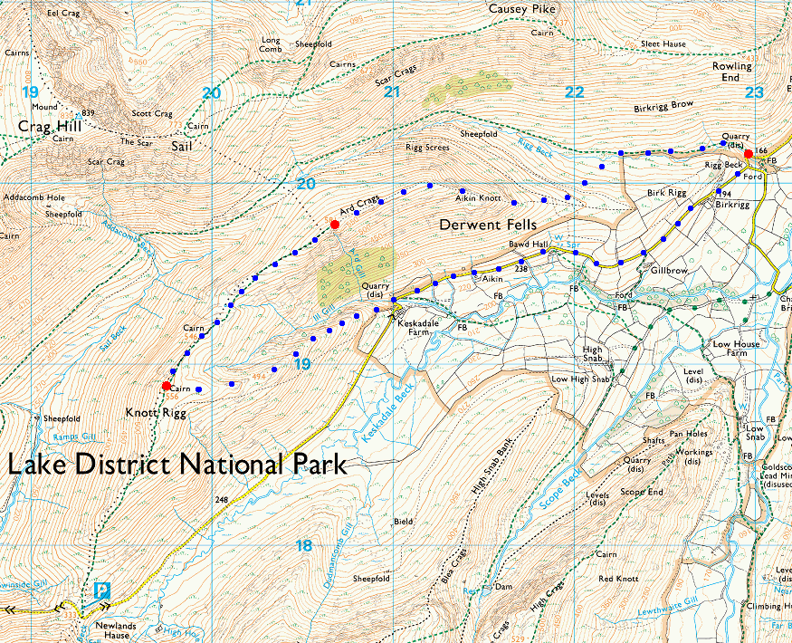 Route: Rigg Beck - Aikin Knott - Ard Crags - Knott Rigg - Keskadale - road - Rigg Beck