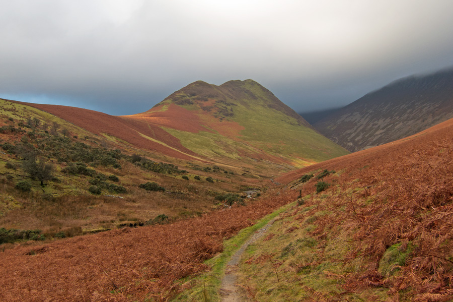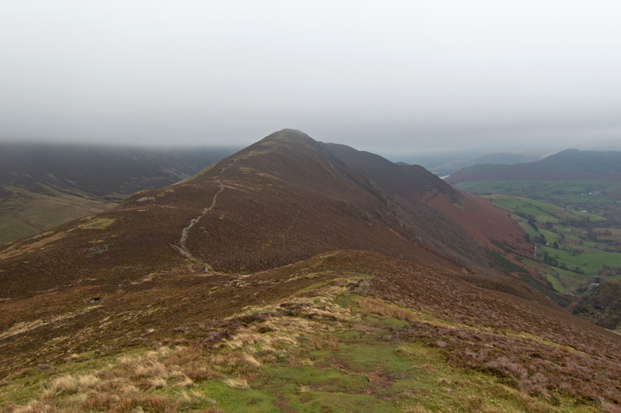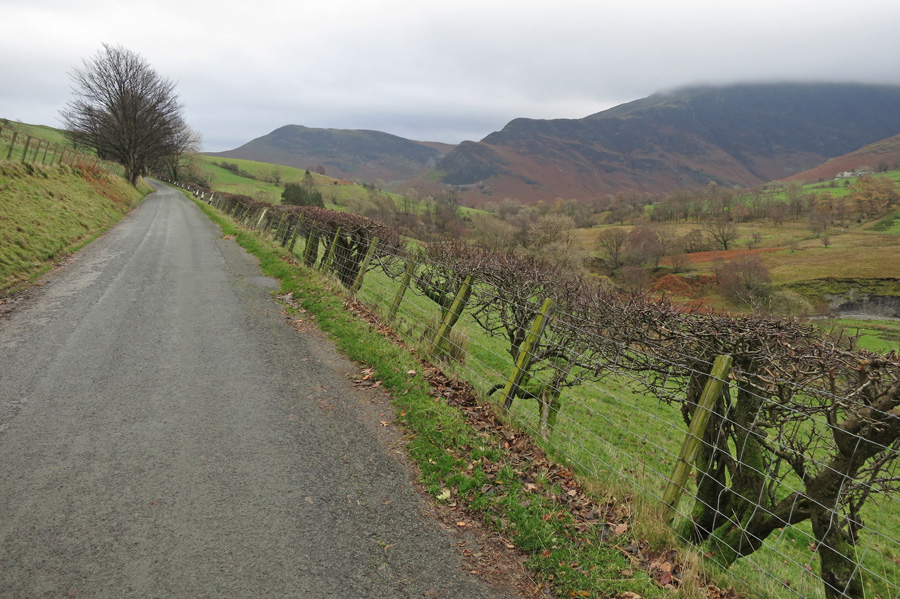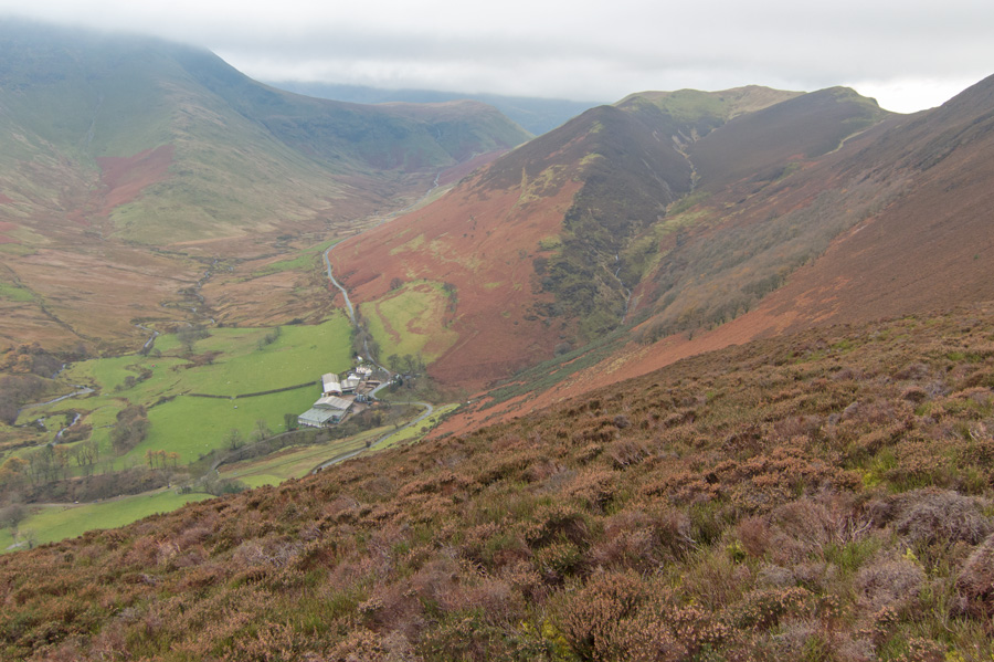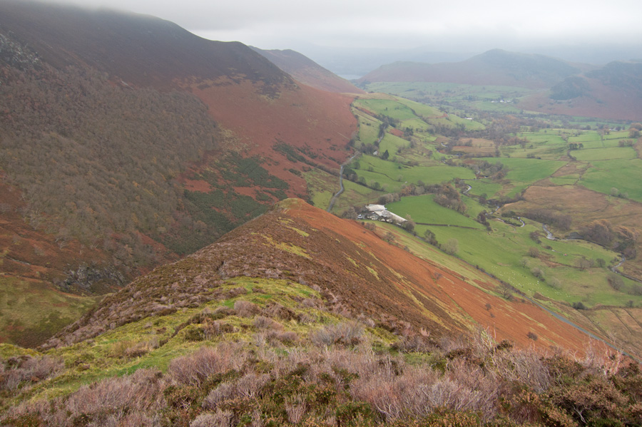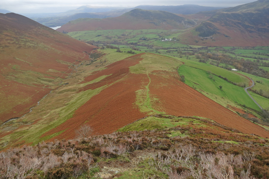 Descending the ridge to Keskadale Farm from Knott Rigg