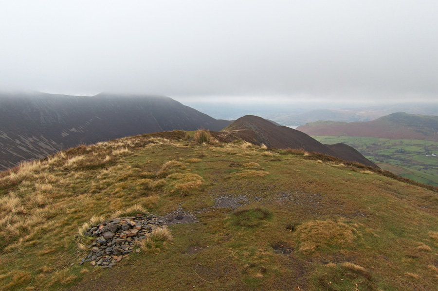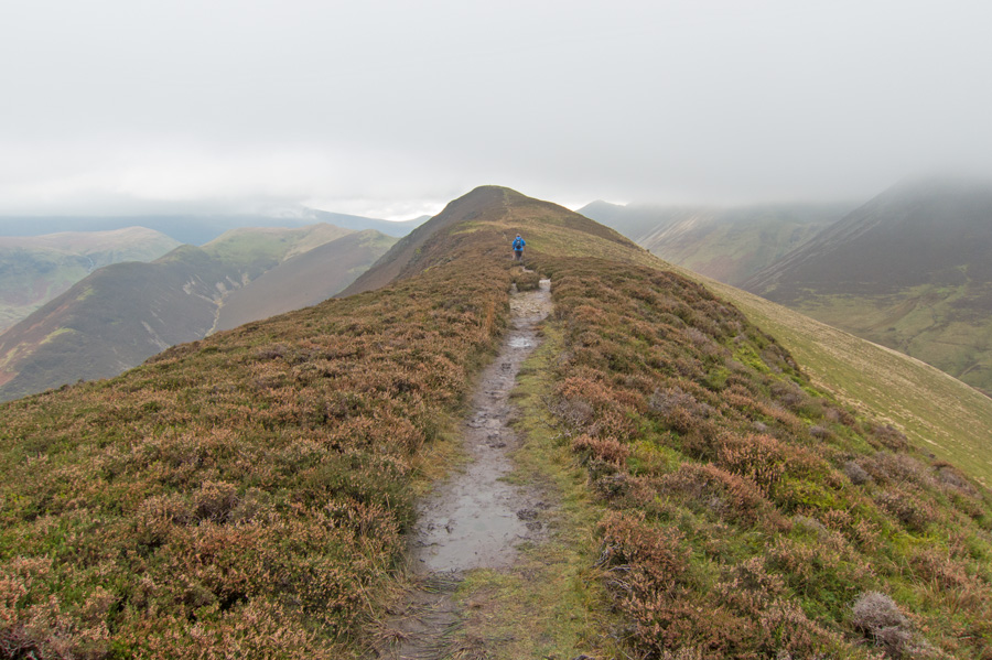Looking back from Ard Crags summit with the top of Causey Pike now in cloud
