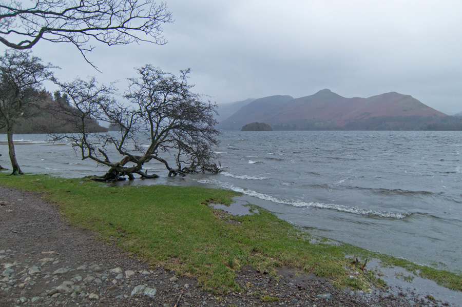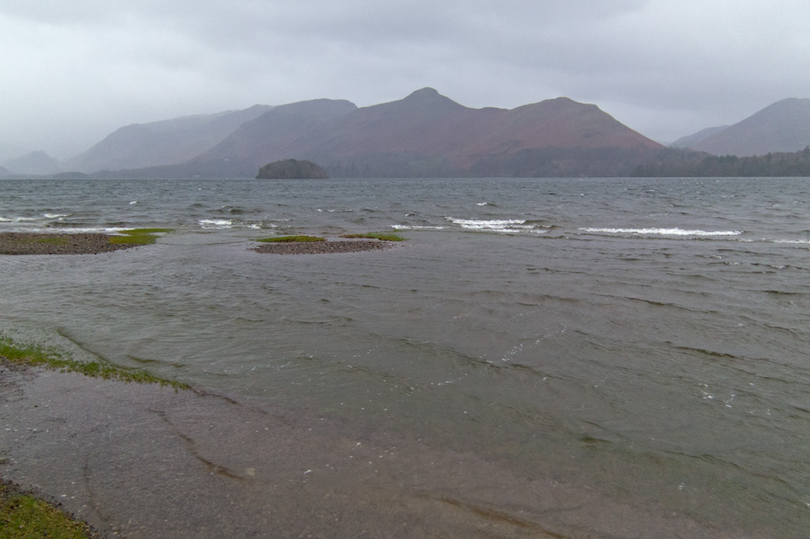 Looking across to Catbells, a high water level at the moment and more rain forecast