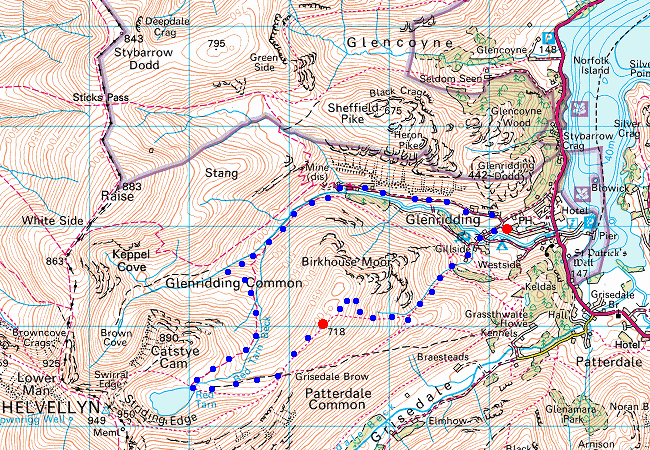 Route: Glenridding village - Mires Beck path - Birkhouse Moor - Red Tarn - Red Tarn Beck path - Greenside Road - Glenridding village