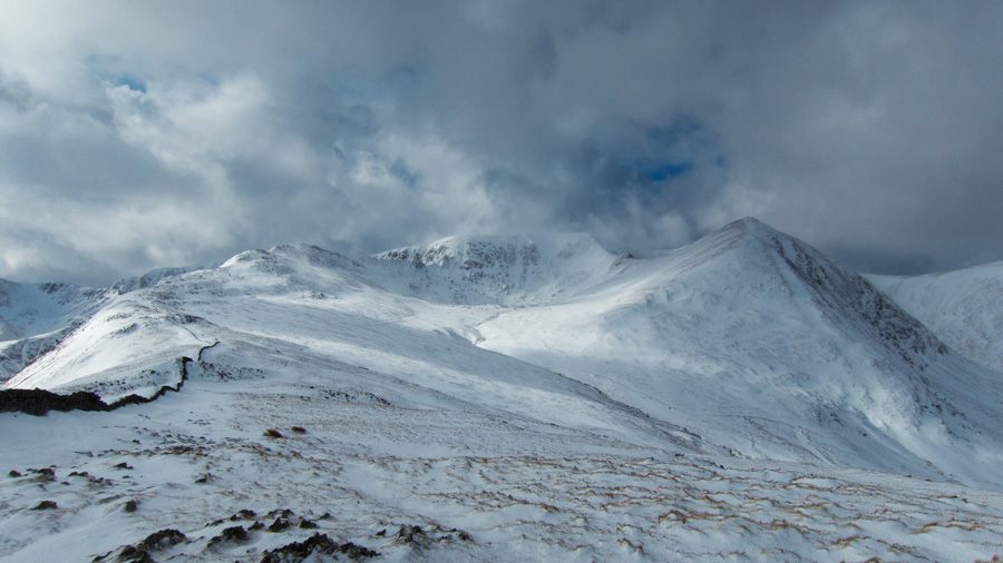 Helvellyn and Catstycam from Birkhouse Moor's summit cairn