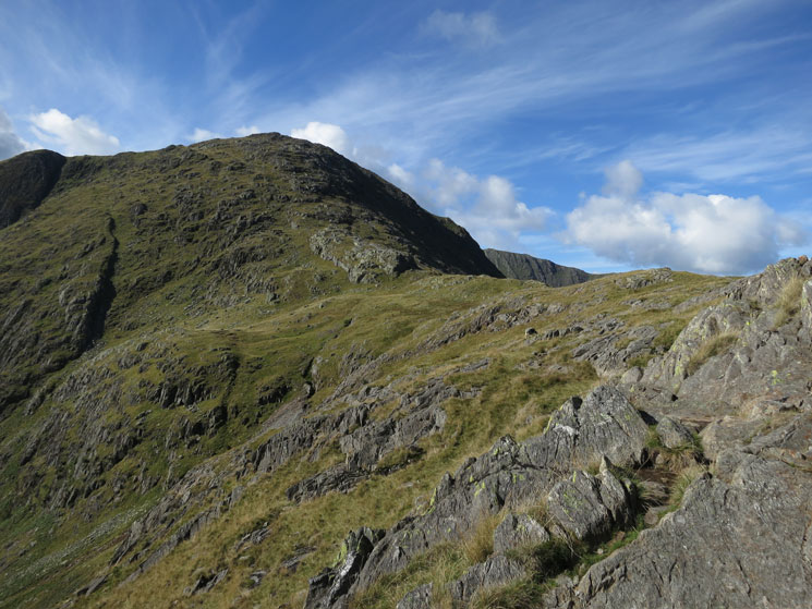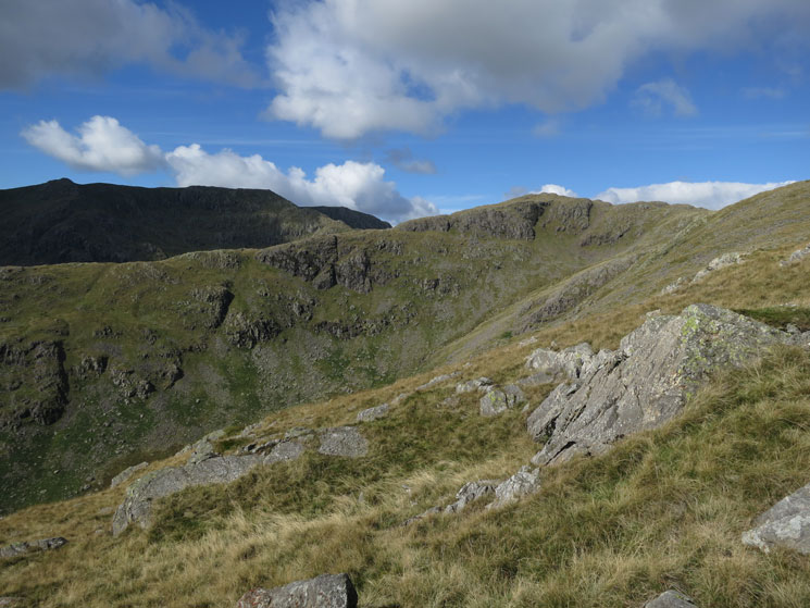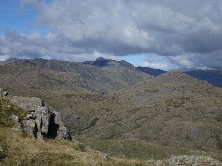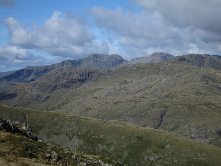 Over Wet Side Edge, beyond Cold Pike are Scafell and Scafell Pike