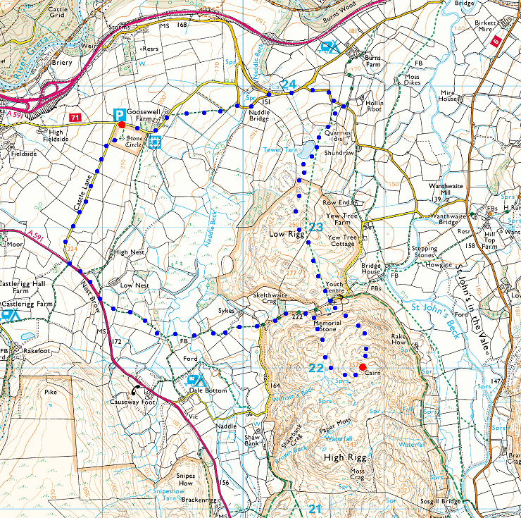 Route: Castlerigg Stone Circle - Naddle Bridge - Tewet Tarn - Low Rigg - St John's in the Vale Church - High Rigg - Nest Brow - Castle Lane - Castlerigg Stone Circle