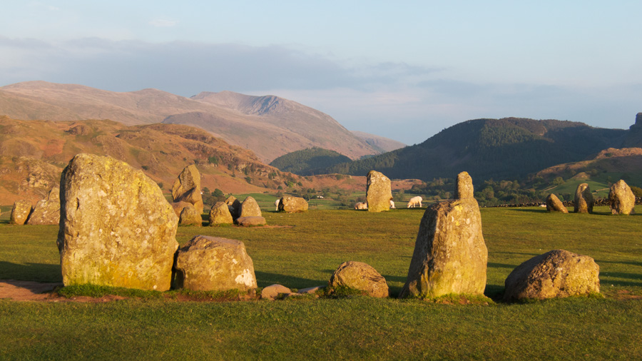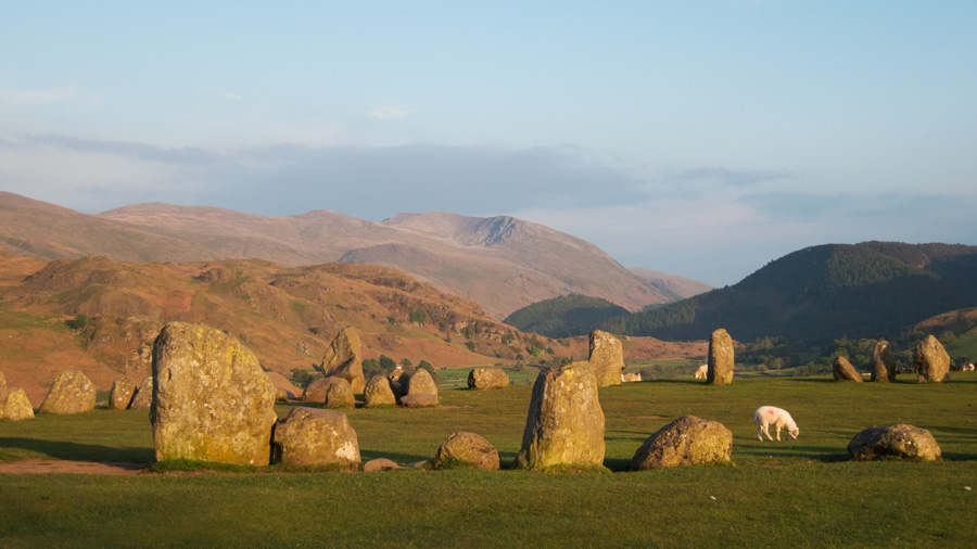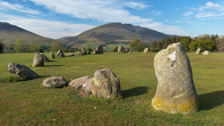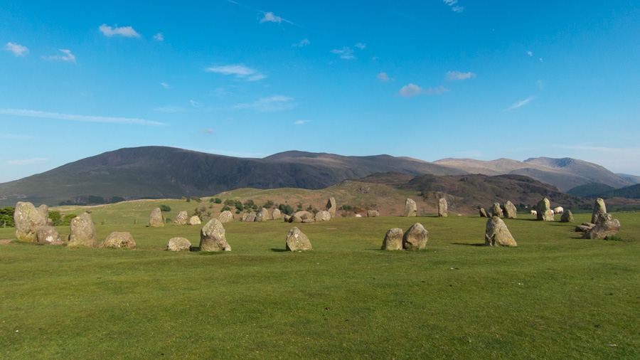 Castlerigg Stone Circle with the Dodds/Helvellyn ridge behind