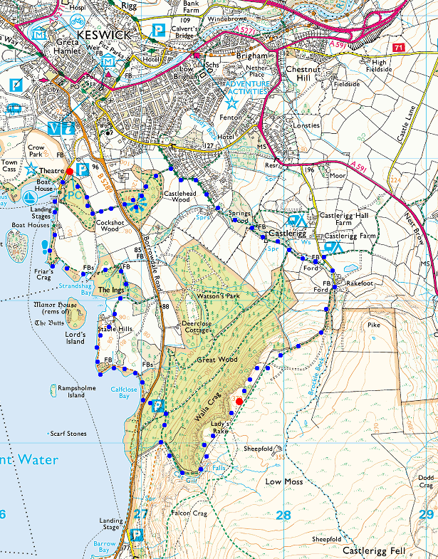 Route: The Theatre by the Lake, Keswick - Castle Head - Rakefoot - Walla Crag - Cat Gill - Derwent Water - Friar's Crag - The Theatre by the Lake
