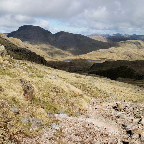 Great Gable and a glimpse of Sprinkling Tarn from the path to Esk Hause