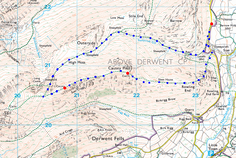 Route: Stonycroft near Stair - Rowling End - Sleet Hause - Causey Pike - Scar Crags - Sail Pass - High Moss - Stonycroft Gill - Stonycroft near Stair