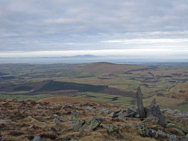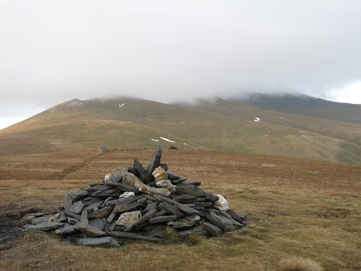 Little Man and Skiddaw both with their tops in cloud from Lonscale Fell's summit