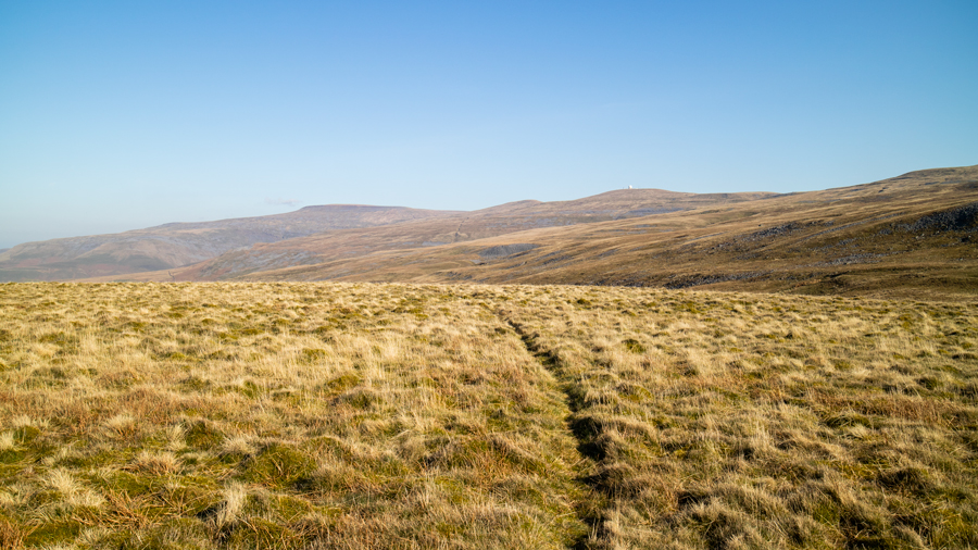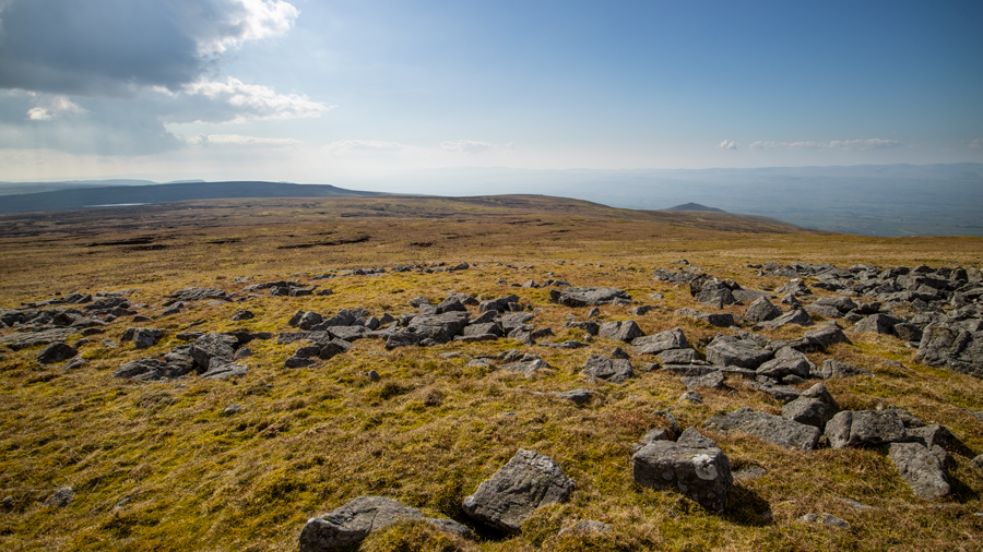 The flat top of Brownber Hill. Cross Fell, Little Dun Fell and Great Dun Fell on the skyline