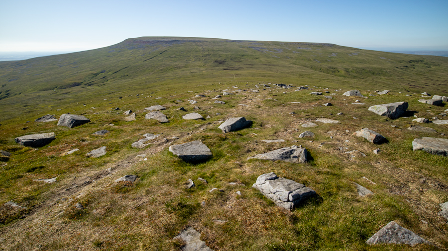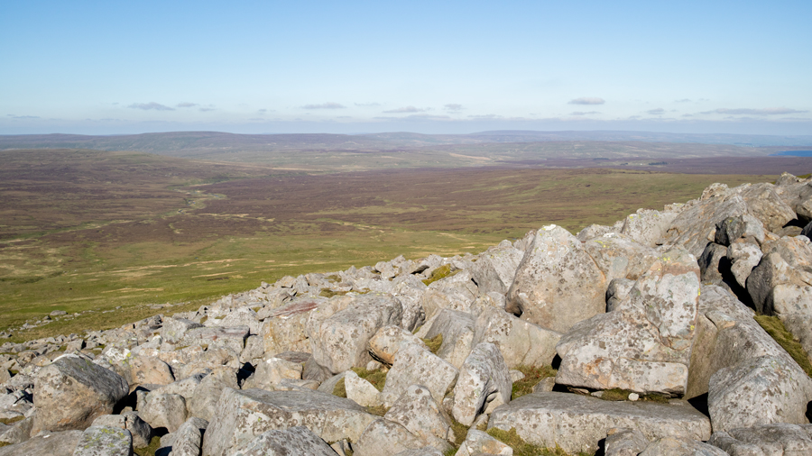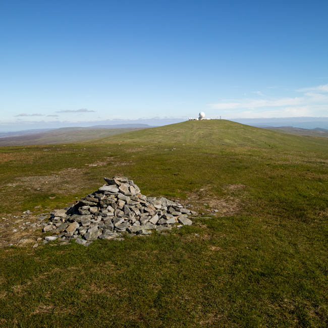 Little Dun Fell summit cairn with Great Dun Fell to the south