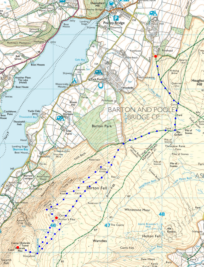 Route: Roehead - The Cockpit, Moor Divock - White Knott - Arthur's Pike - Bonscale Pike - Barton Fell - The Cockpit - Roehead