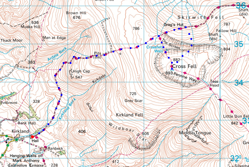 Route: Kirkland - High Cap - Greg's Hut - Cross Fell - High Cap - Kirkland