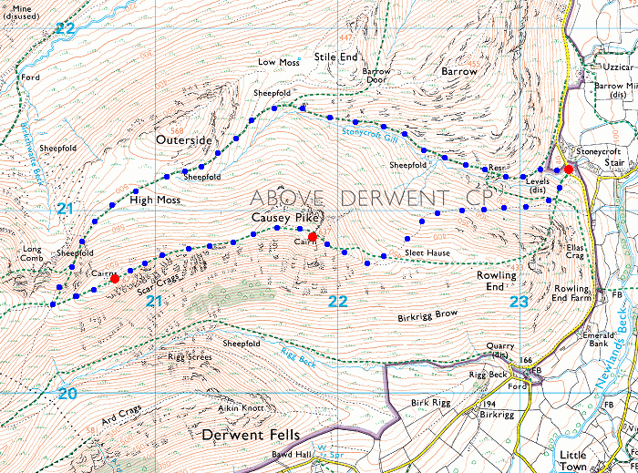 Route: Stonycroft near Stair - Sleet Hause - Causey Pike - Scar Crags - Sail Pass - High Moss - Stonycroft Gill - Stonycroft near Stair