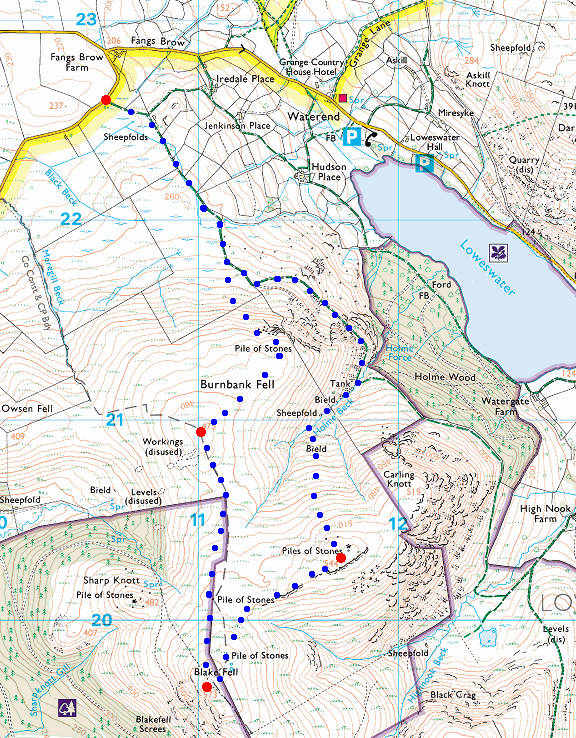 Route: Fangs Brow - Burnbank Fell - Blake Fell - Carling Knott - Holme Beck - The Coffin Road - Fangs Brow