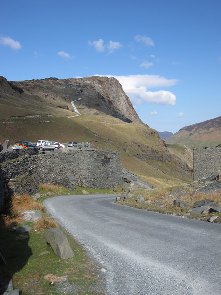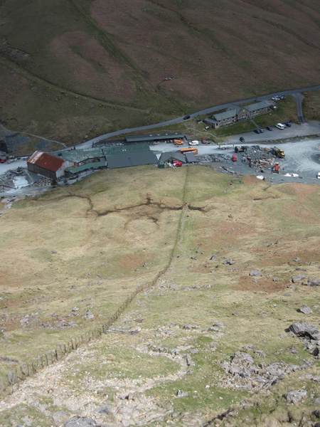 Honister Mine buildings and the YHA hostel at Honister Hause