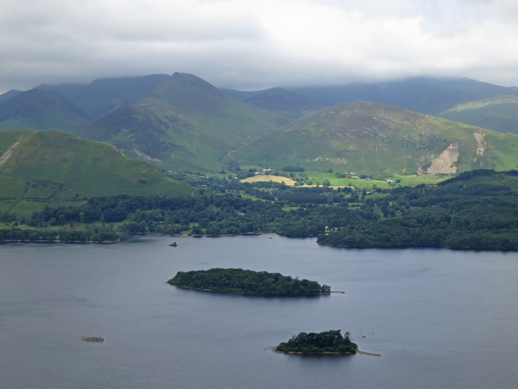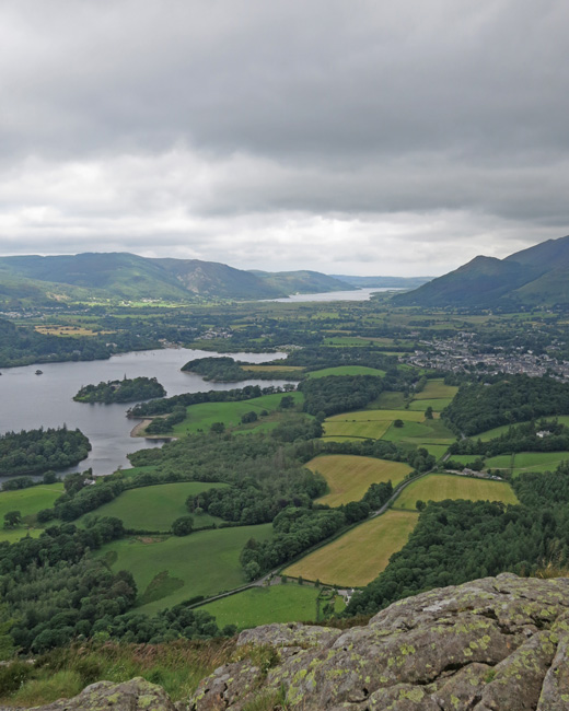 Derwent Water and Bassenthwaite Lake from Walla Crag. The pointy fell on the right is Dodd