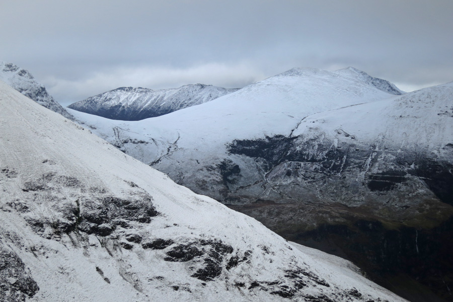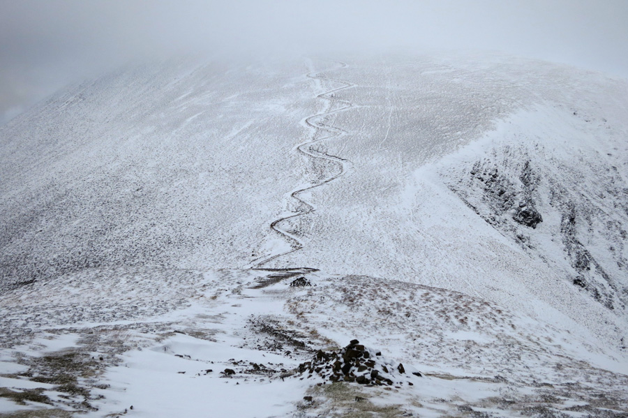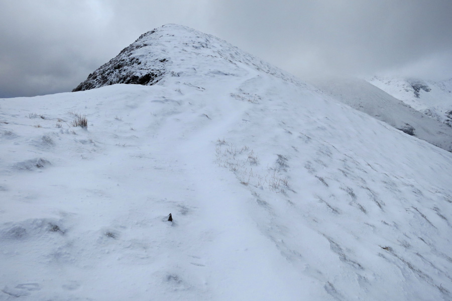 Snow/sleet showers, spindrift with the wind and snow on the ridge