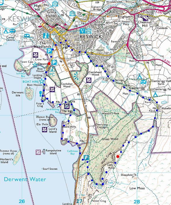 Route: The Theatre by the Lake, Keswick - Friar's Crag - Derwent Water - Cat Gill - Walla Crag - Rakefoot - The Theatre by the Lake