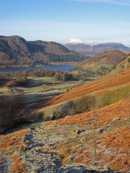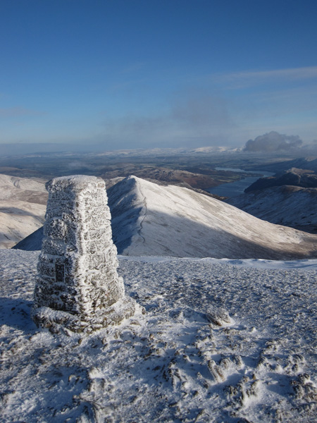Catstycam and Ullswater with the North Pennines in the far distance from Helvellyn's trig point