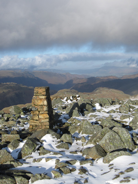 Great Langdale with Windermere in the distance from Harrison Stickle's summit
