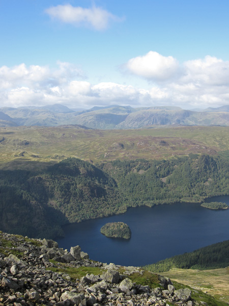 Thirlmere and the Skiddaw fells from high up on the Browncove Crags path