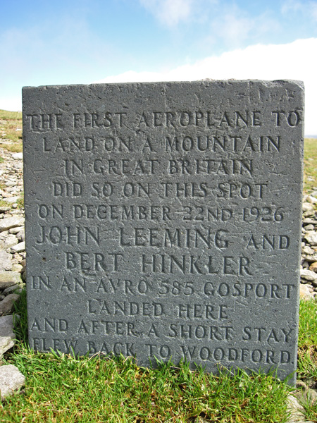 Plaque for 'the first aeroplane to land on a mountain in Great Britain', 1926