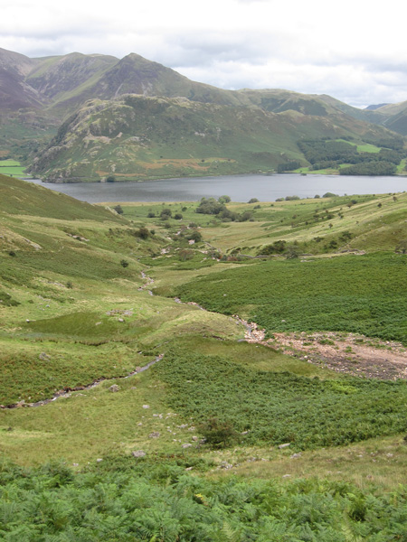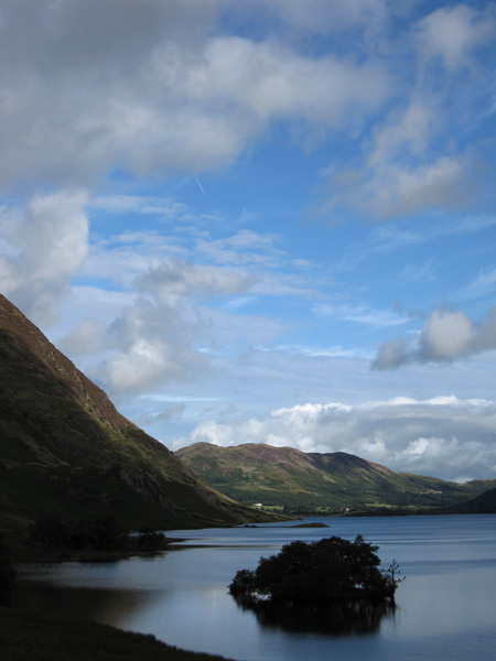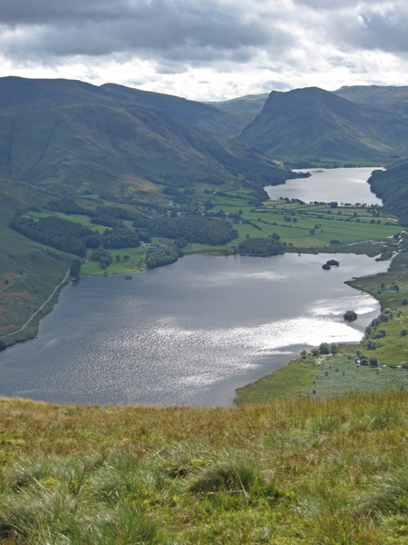 Looking down Crummock Water over Scale Island and past Mellbreak to Low Fell