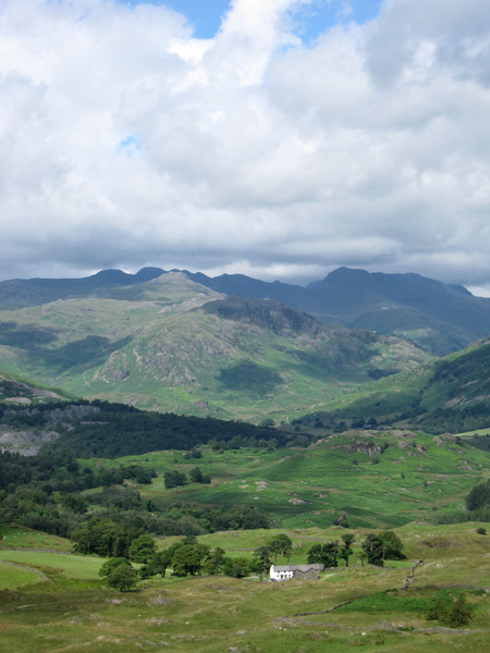 Pike o'Blisco with Crinkle Crags and Bowfell beyond. Low Arnside at the bottom of the photo
