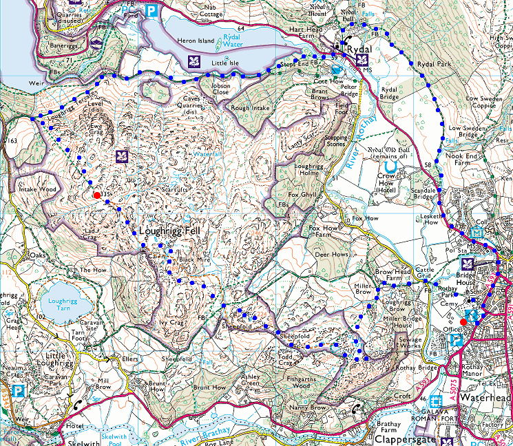 Route: Ambleside - Miller Bridge - Todd Crag - Lily Tarn - Loughrigg Fell - Loughrigg Terrace - Rydal Water - Rydal - Rydal Hall - Rydal Park - Ambleside