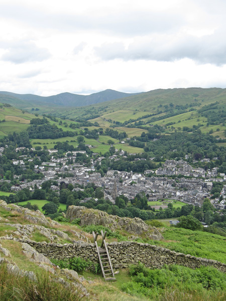 Ambleside from Todd Crag with the conical Froswick and Ill Bell in the distance