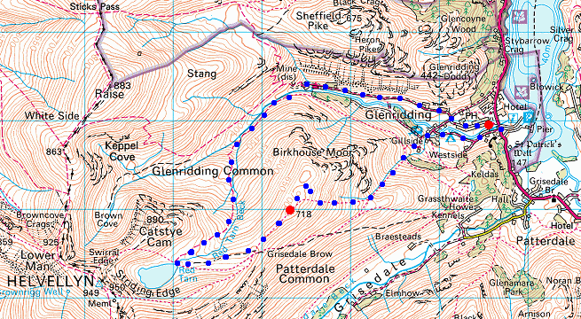 Route: Glenridding village - Mires Beck path - Birkhouse Moor - Red Tarn - Red Tarn Beck path - Greenside Road - Glenridding village