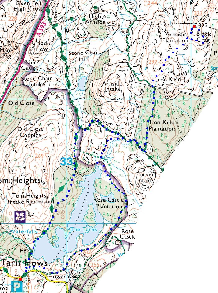 Route: Tarn Hows Carpark - Tarn Hows - Iron Keld Plantation - Black Fell (Black Crag) - Iron Keld Plantation - Tarn Hows - Tarn Hows Carpark